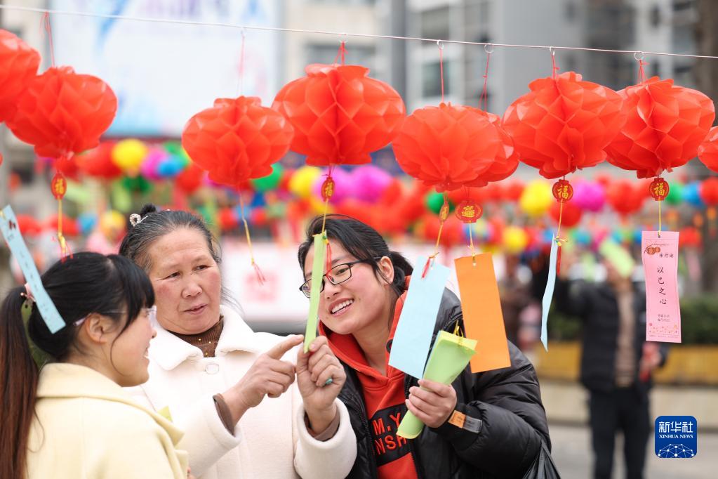 2月3日,在貴州省畢節市七星關區青龍街道,市民在猜燈謎。