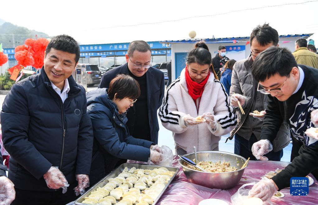 2月3日,在位于重慶的中建六局科學城隧道工程一標段項目部,職工在迎元宵主題活動上包餃子。