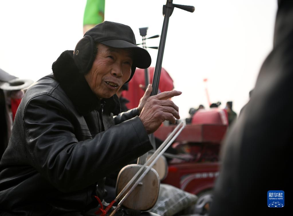 當日是正月十三,時隔三年,河南省寶豐縣馬街書會線下“重啟”。來自全國各地的說書藝人負鼓攜琴,聚集于此。在麥田中,他們以天作幕,以地為臺,說書會友,彈唱獻藝。