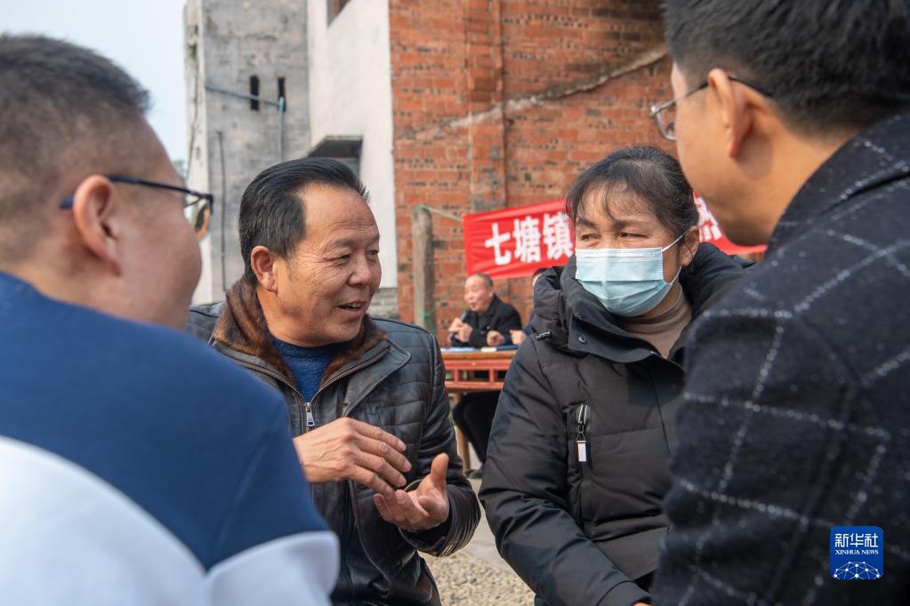 2月3日,在重慶市璧山區七塘鎮將軍村“三級院壩會”上,村民、商戶、干部在一起交流討論。