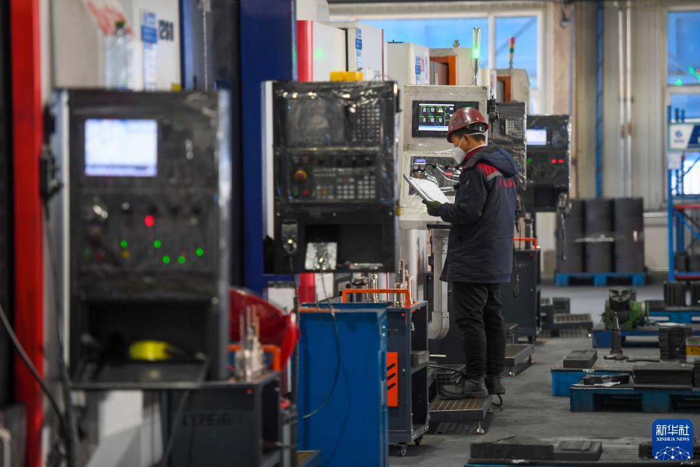 2月3日,在內蒙古赤峰市寧城縣一家科技有限公司的車間內,工人操作機器進行生產。