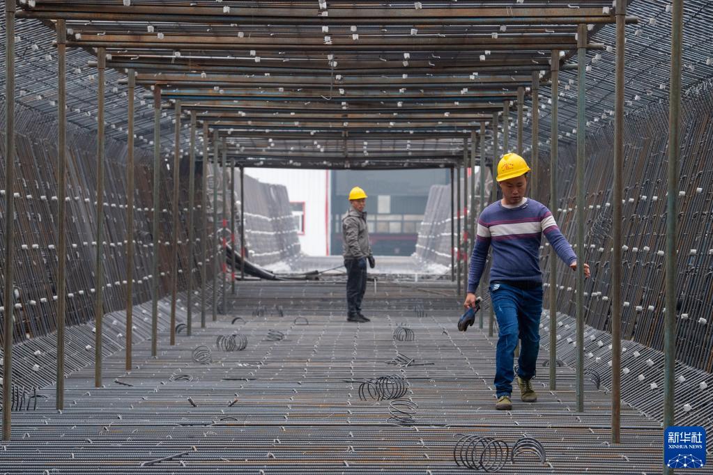 2月4日,在渝昆高鐵重慶段建設施工現場,施工人員在進行作業。