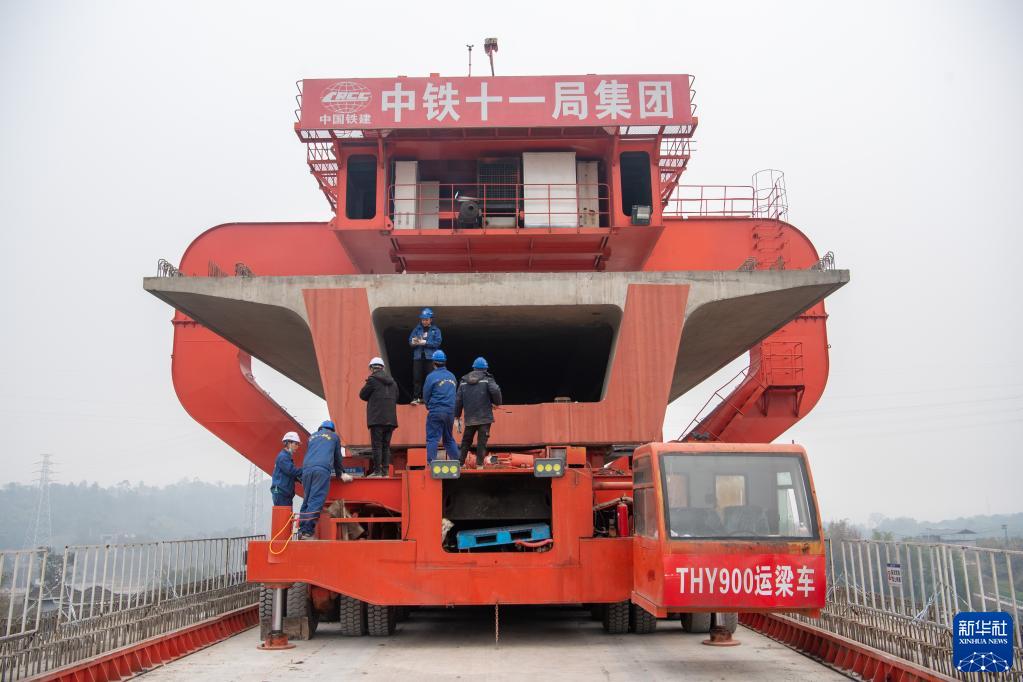 當天,在由中鐵十一局集團承建的渝昆高鐵川渝段站前一標建設施工現場,830噸大型箱梁在鴨子堡特大橋成功架設,標志著渝昆高鐵重慶段實現節后全面復工復產。