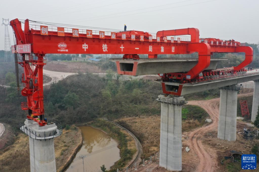 當天,在由中鐵十一局集團承建的渝昆高鐵川渝段站前一標建設施工現場,830噸大型箱梁在鴨子堡特大橋成功架設,標志著渝昆高鐵重慶段實現節后全面復工復產。