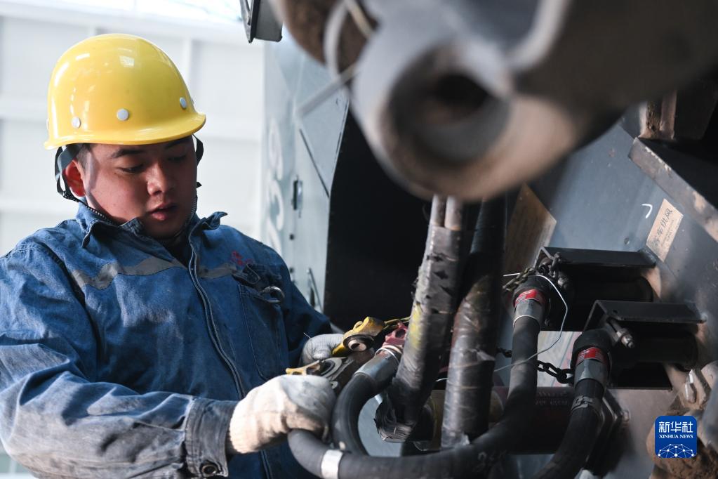 2月4日,在格爾木機務段檢修車間,馬國仁在檢修機車。