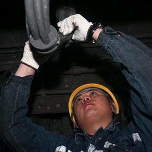 春運期間,青藏鐵路加開多趟列車,馬國仁所在的班組變得愈加忙碌。從早上八點半到下午六點,馬國仁與工友在車間里不停地下地溝、上機車,檢查機車每一個部件。