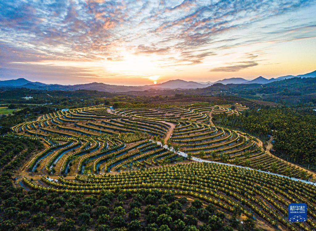 2月1日在海南省三亞市育才生態區拍攝的“水果島”火龍果基地(無人機照片)。