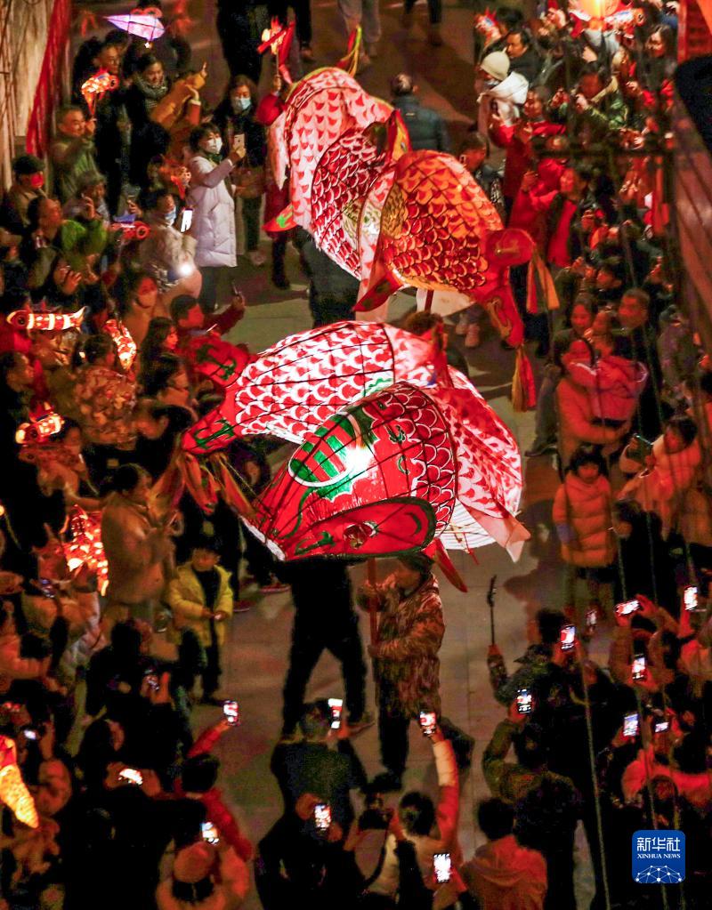 1月31日,在安徽省黃山市歙縣,瞻淇魚燈表演隊伍在嬉游祈福。