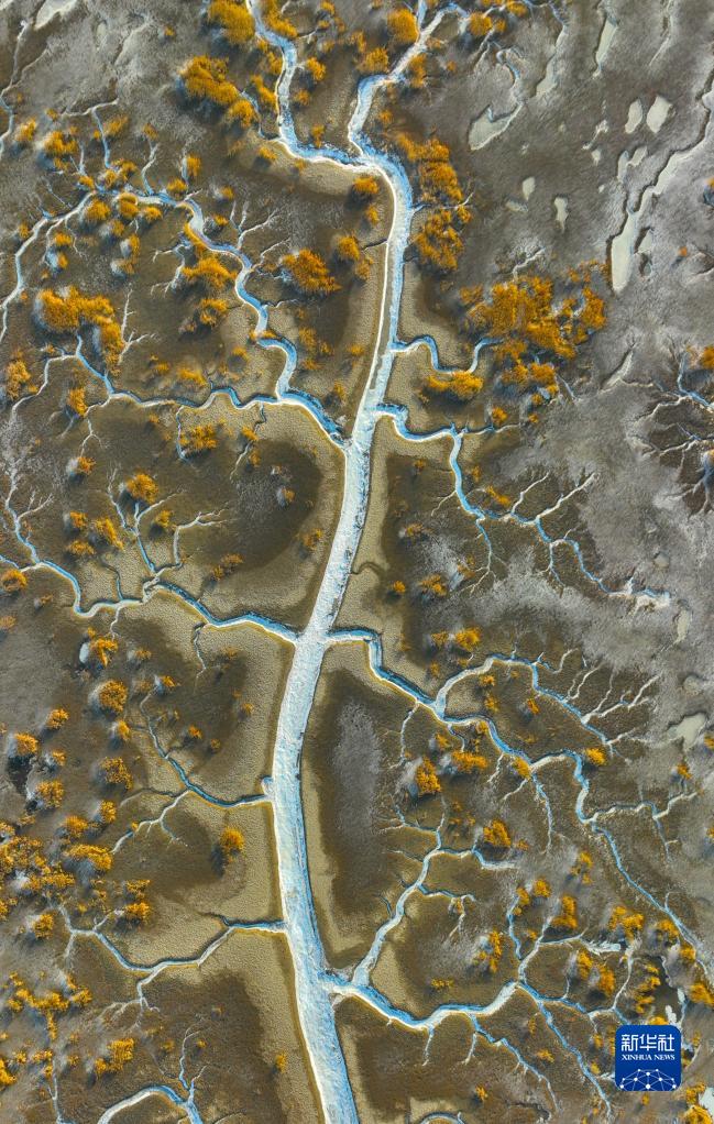 2月1日拍攝的遼河口濕地“冰脈”(無人機照片)。