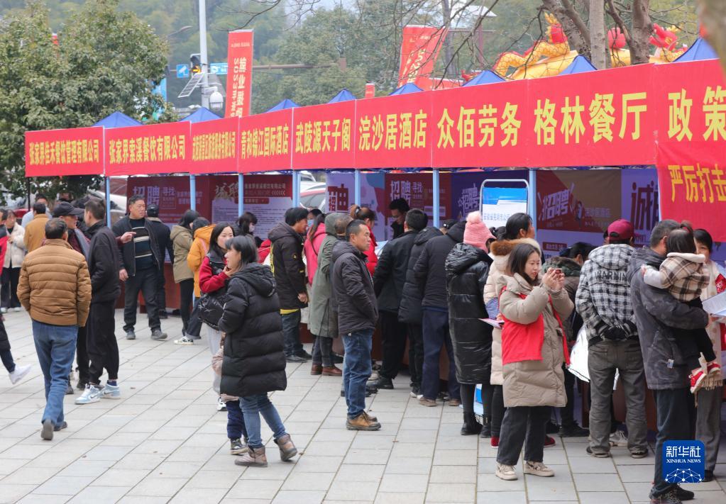 2月4日,在湖南張家界市武陵源區協合鄉舉行的“春風送暖”農村用工招聘會上,村民在了解崗位信息。當地20多家企業提供采茶工、廚師、講解員、酒店服務員等500多個就業崗位,幫助更多農村群眾實現家門口就業。