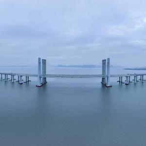 這是2月4日拍攝的新建福廈鐵路泉州灣跨海大橋(無人機照片)。