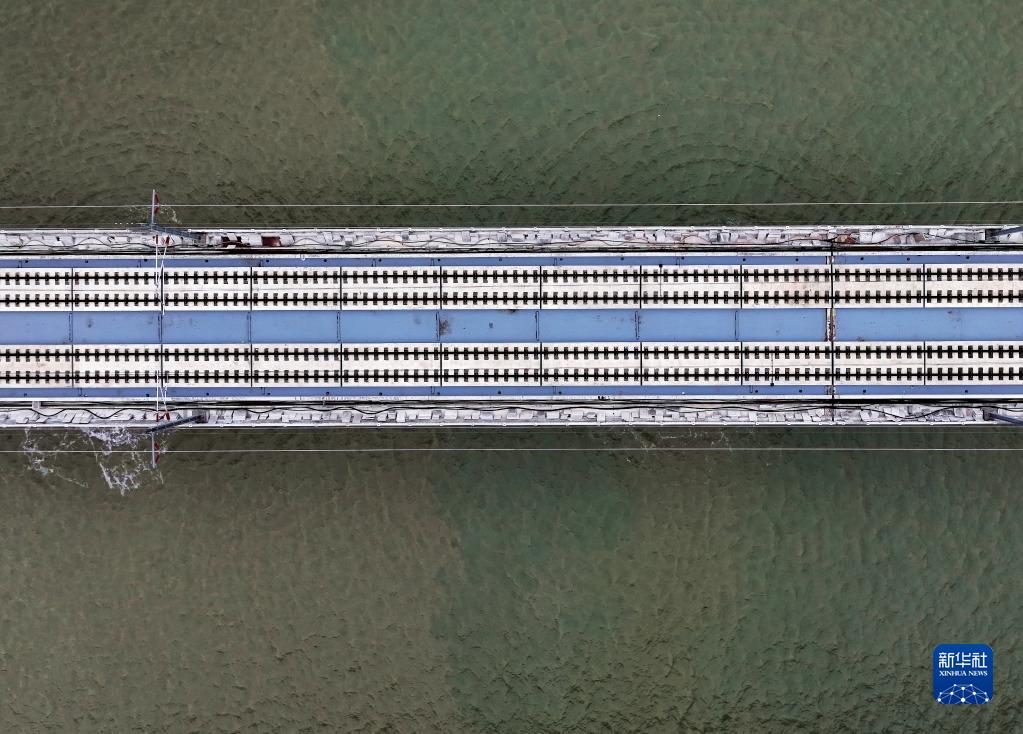 這是2月4日拍攝的新建福廈鐵路泉州灣跨海大橋(無人機照片)。