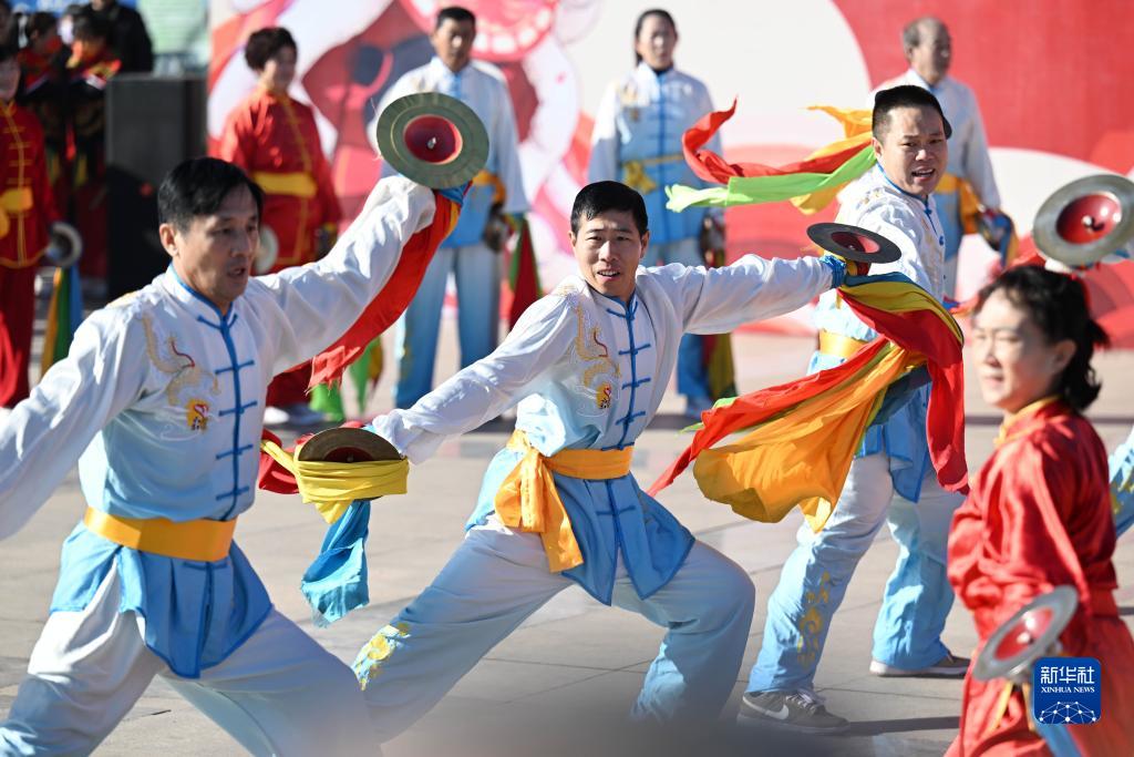 2月4日,漢沽飛镲表演隊在濱河廣場進行展演。