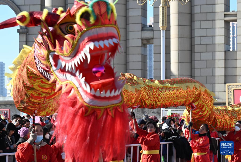 元宵佳節將至,一年一度的花會踩街展演活動在天津市濱海新區濱河廣場舉行,秧歌、舞龍舞獅等十余支傳統表演隊為市民奉上一場文化盛宴。