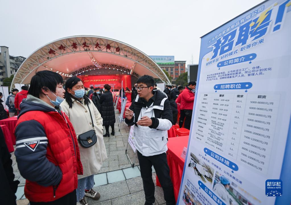 當日是立春,浙江省義烏市蘇溪鎮開啟“百企千崗”新春首場招聘會,信息光電、針織、物流、智能制造等多個行業的近百家企業參會,提供企業管理、產品研發、生產操作等5000余個工作崗位。