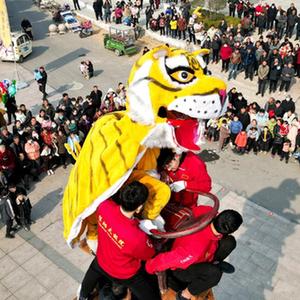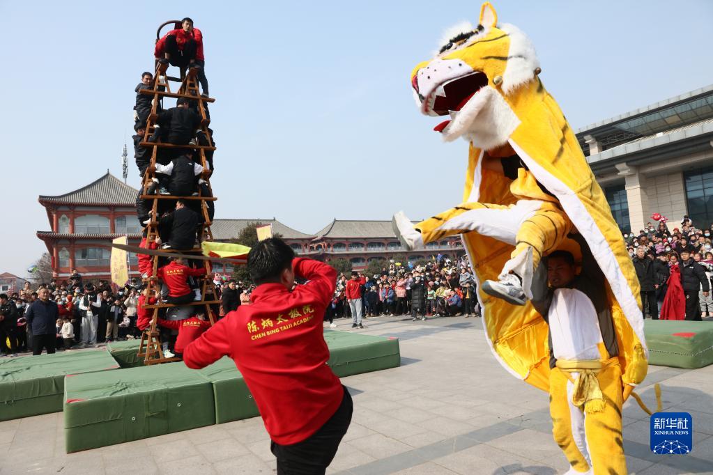 當日,河南省焦作市溫縣陳家溝村流傳數百年的傳統民俗節目“陳家溝舞虎”精彩上演,讓觀眾大飽眼福。