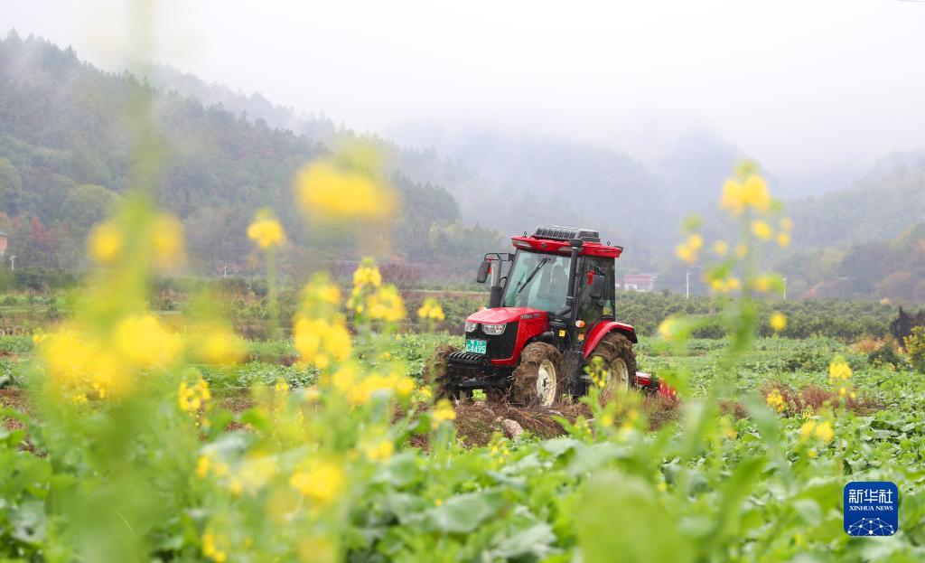 2月4日,在湖南省衡陽市衡東縣楊林鎮寺門前村,農機手駕駛農機在翻耕農田。
