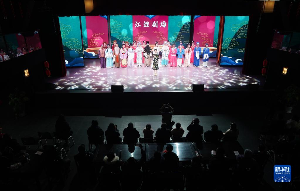 當日,江蘇省淮安市盱眙縣江淮劇場舉行新春黃梅戲專場惠民演出。當地黃梅劇團的演員獻演《鬧花燈》《天仙配》《女駙馬》等劇目,讓群眾在家門口享受藝術盛宴。據介紹,位于盱眙縣第一山國家森林公園的江淮劇場將持續開展“為民、惠民、樂民”文藝演出,助推文旅深度融合發展。