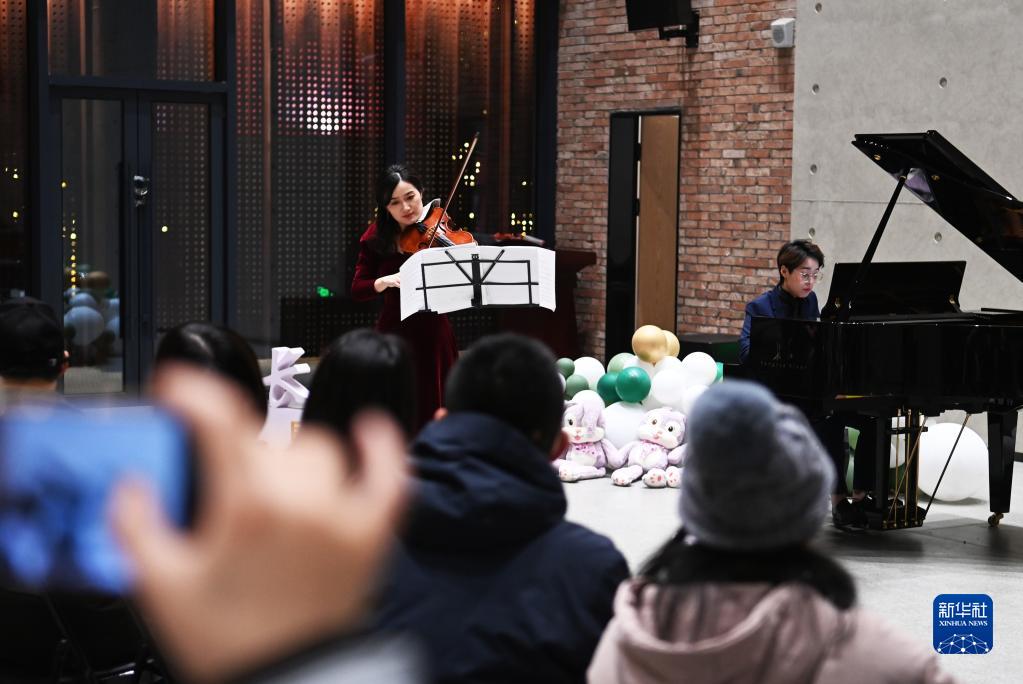 2月4日,觀眾在欣賞小提琴與鋼琴演奏。