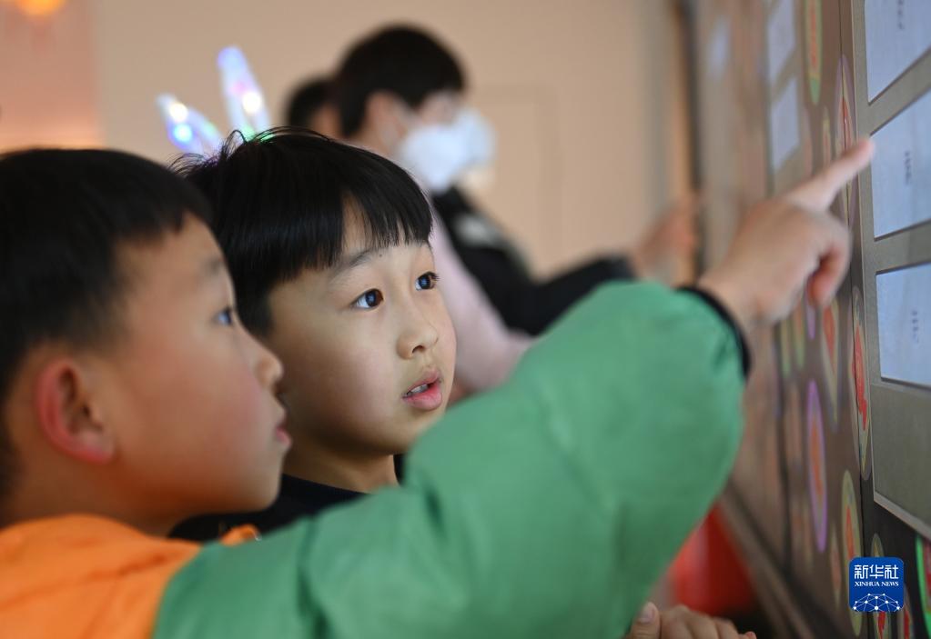 2月4日,小朋友在玩字謎競猜游戲。