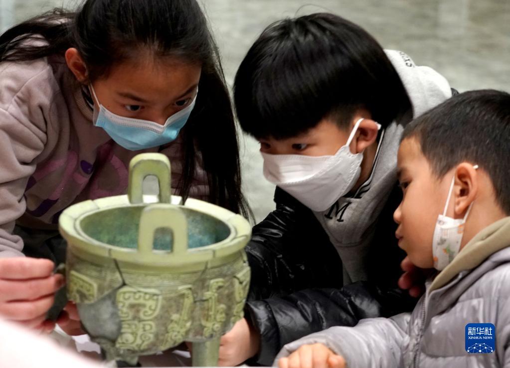 2月4日,小朋友在中國文字博物館體驗文物拼拼樂。