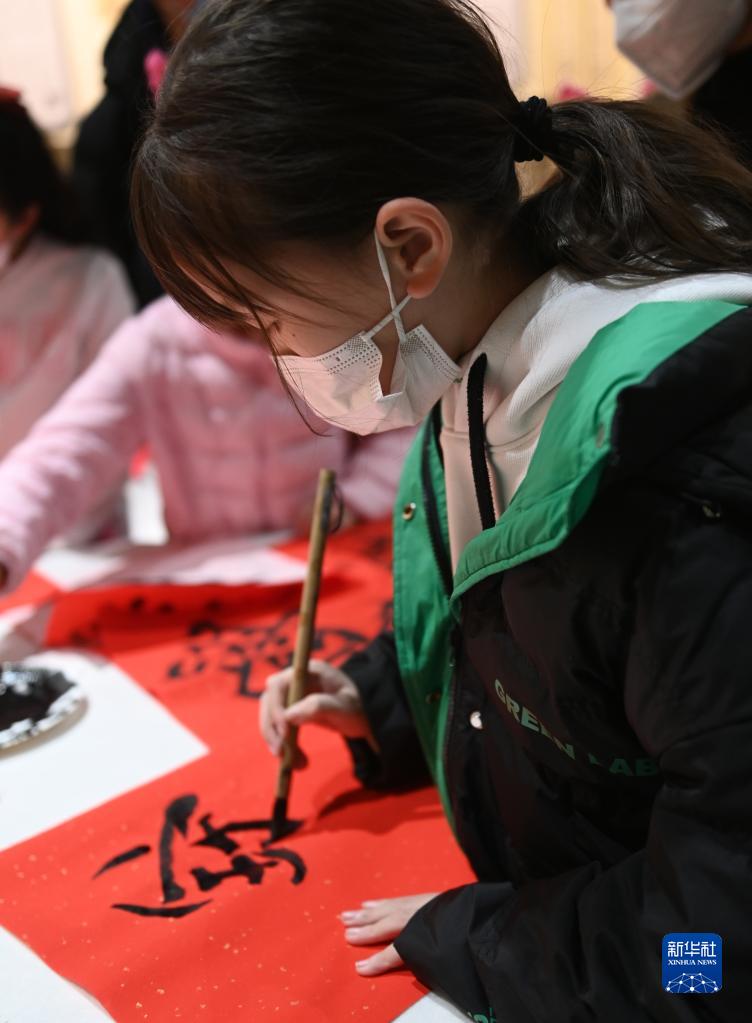 2月4日,小朋友在寫毛筆字。