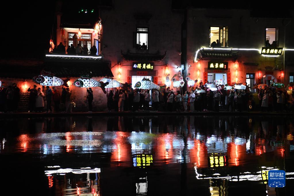 這是宏村舉行的迎元宵鬧花燈活動(2月4日攝)。