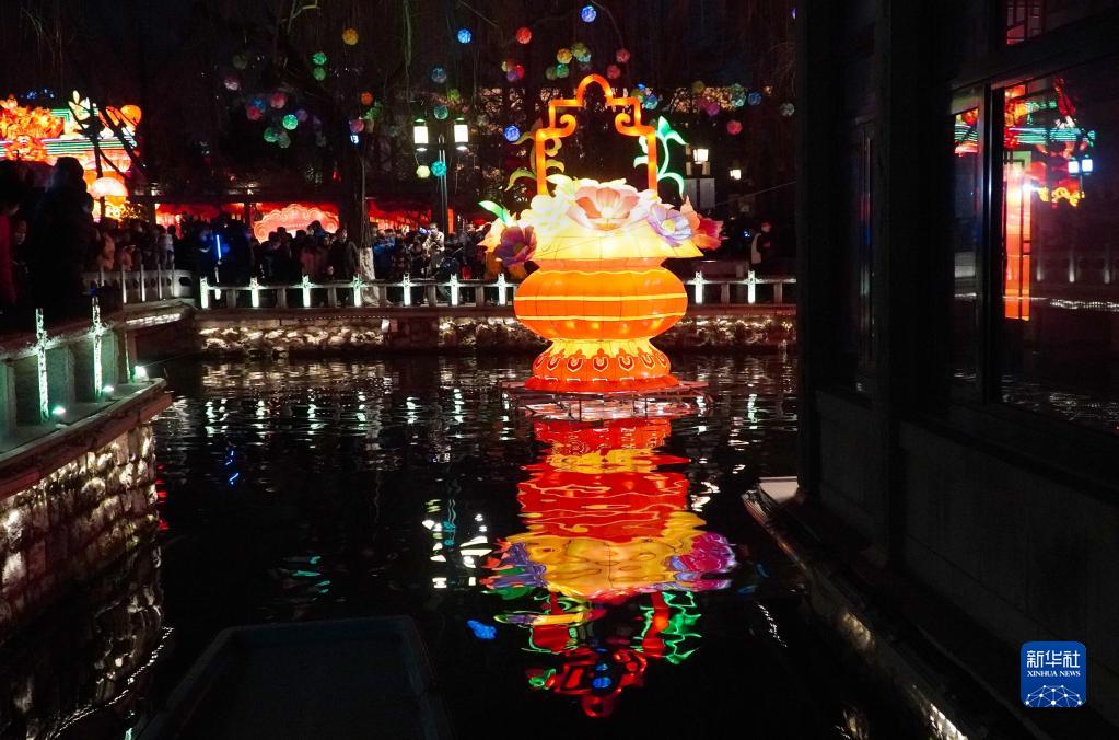 元宵節來臨之際,山東省濟南市的趵突泉等多處名泉,潺潺泉水與彩燈交相輝映,流光溢彩的獨特景觀吸引了不少市民前來賞泉觀燈,喜迎元宵佳節。