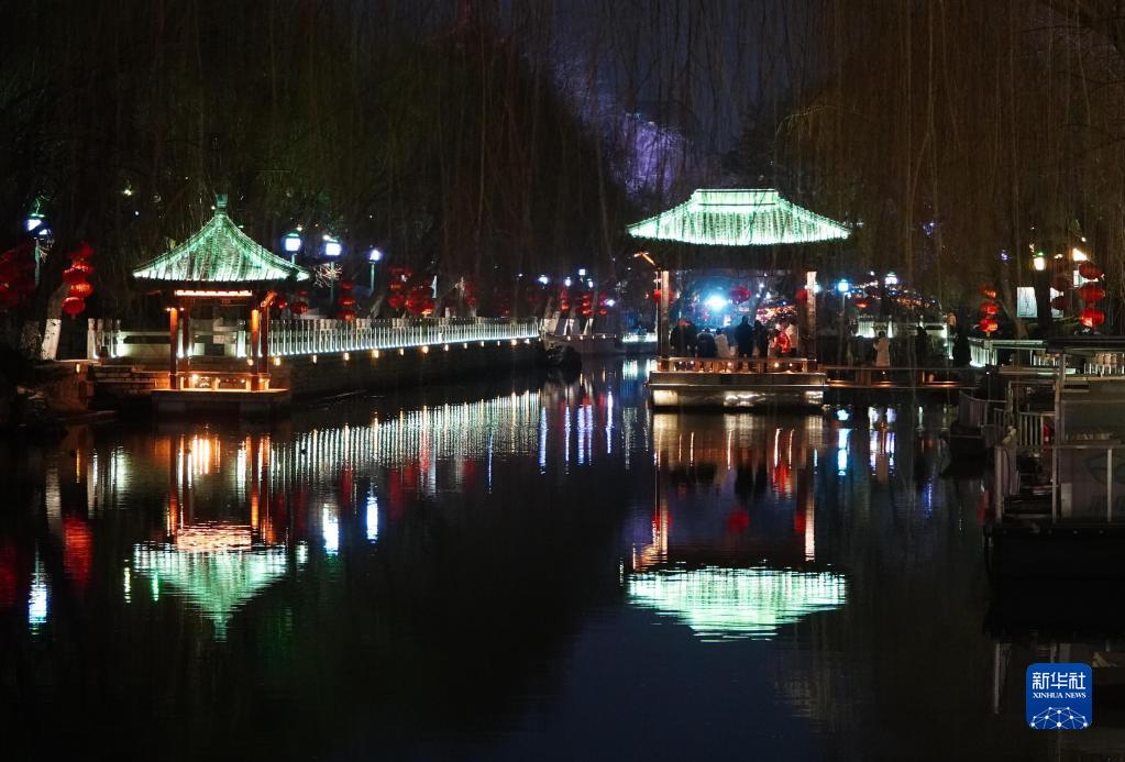 元宵節來臨之際,山東省濟南市的趵突泉等多處名泉,潺潺泉水與彩燈交相輝映,流光溢彩的獨特景觀吸引了不少市民前來賞泉觀燈,喜迎元宵佳節。