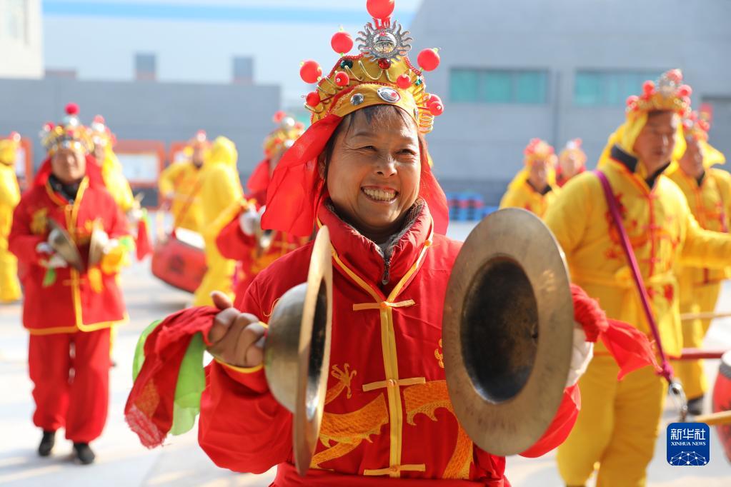 2月5日,河南省焦作市溫縣武德鎮民間藝人表演“武德鎮抬鼓”。