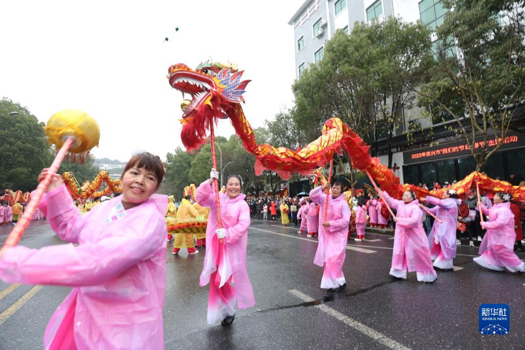 2月5日,在湖南省資興市人民廣場,當地群眾進行舞龍表演。