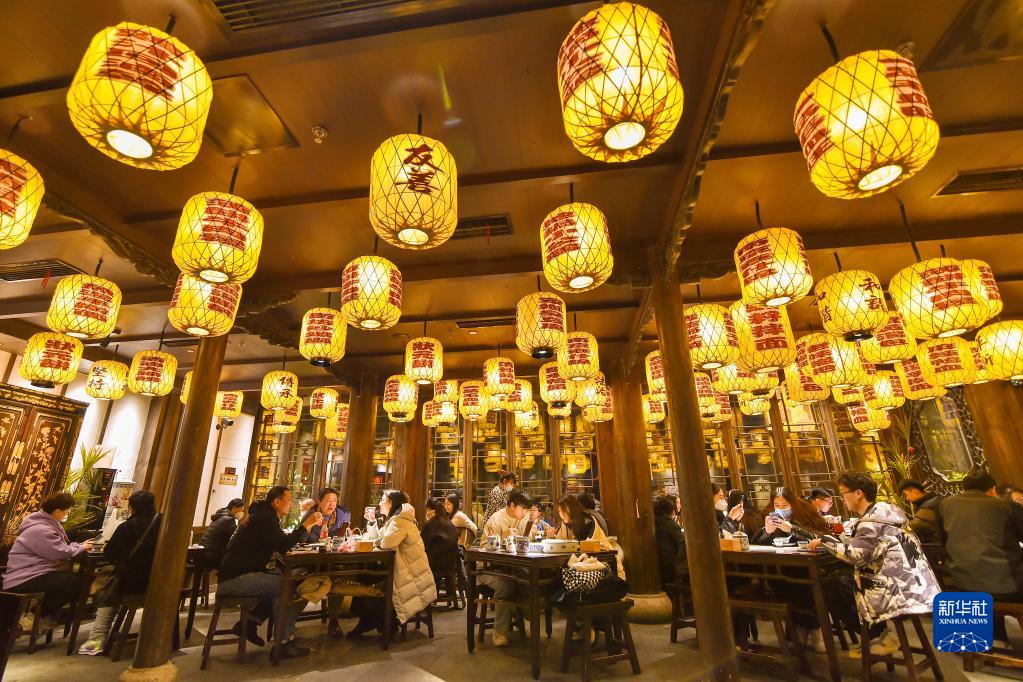 1月31日,游客在南京市老門東景區一家餐廳品嘗金陵風味美食。