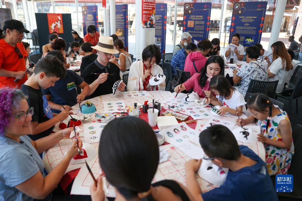 2月4日,在澳大利亞悉尼海事博物館,游客在“歡樂春節——走進博物館過大年”文化體驗活動中體驗戲曲臉譜繪畫。