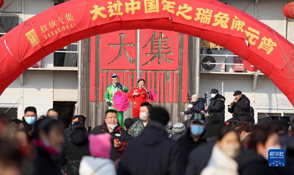 2月5日,演員在有著300余年歷史的遼寧省營口紅旗大集上表演東北二人轉。