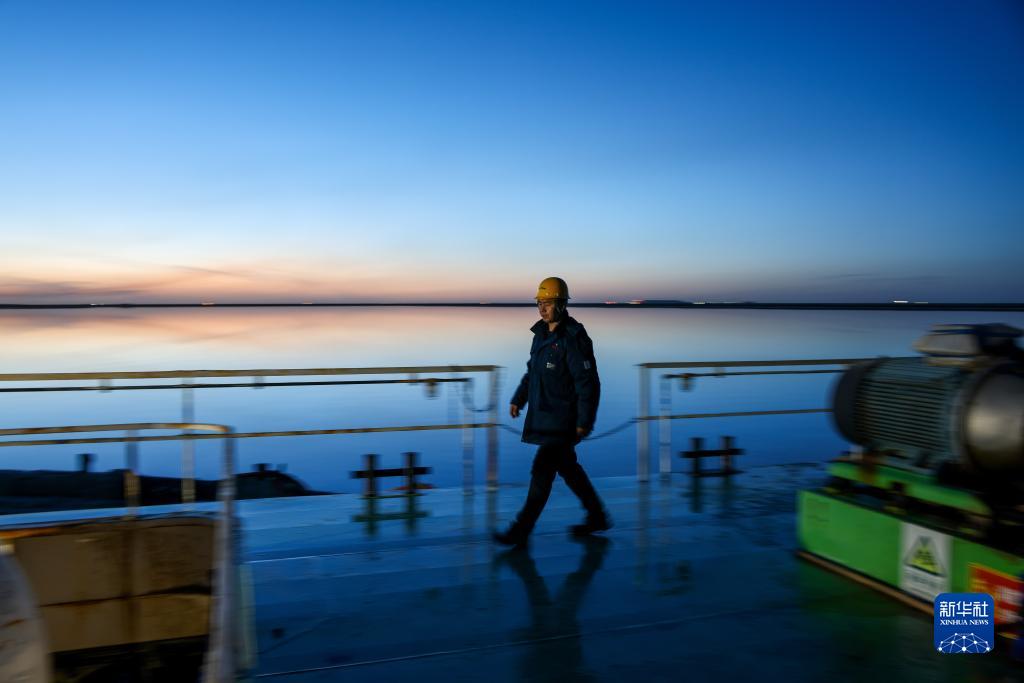 2月2日晚間,賀連福在水采船上巡檢。