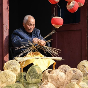今年82歲的王學坤自幼跟隨父輩學編燈籠。制作一個小巧的“火葫蘆”燈籠要14道流程,工藝繁復,費時費力,但王學坤做起來得心應手。2007年,他所掌握的“竹篾子燈籠編織技藝”被列入陜西省第一批非物質文化遺產名錄。