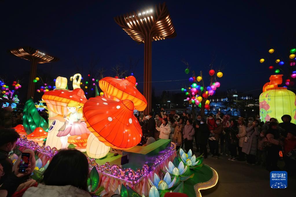 當日是元宵佳節,在北京世園公園,北京世園花燈藝術節的170組、3900盞特色花燈,組成3千米花燈觀賞長廊及11個特色觀賞區,吸引了眾多游客前來賞花燈,度佳節。