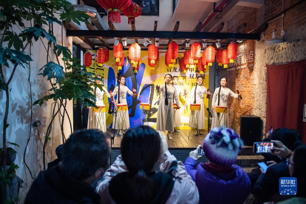 2月5日,在湖南省長沙市天心區太平老街前行美術館,市民觀看天心區文化館工作人員演出的長沙大鼓《氣貫長虹耀乾坤》。