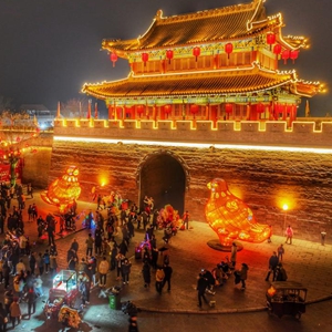 當日是農歷正月十五元宵節,在河南省??h古城里,古色古香的建筑配合璀璨燈光,吸引眾多游客沉醉其中,度過難忘的元宵夜。