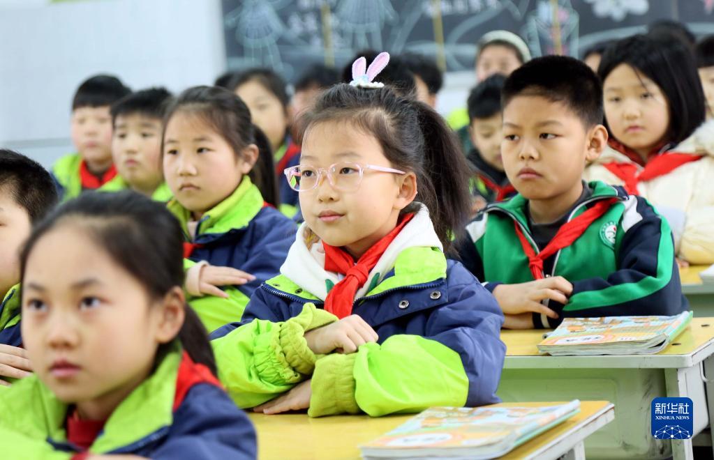2月6日,河南省洛陽市汝陽縣第二實驗小學學生在認真聽課。