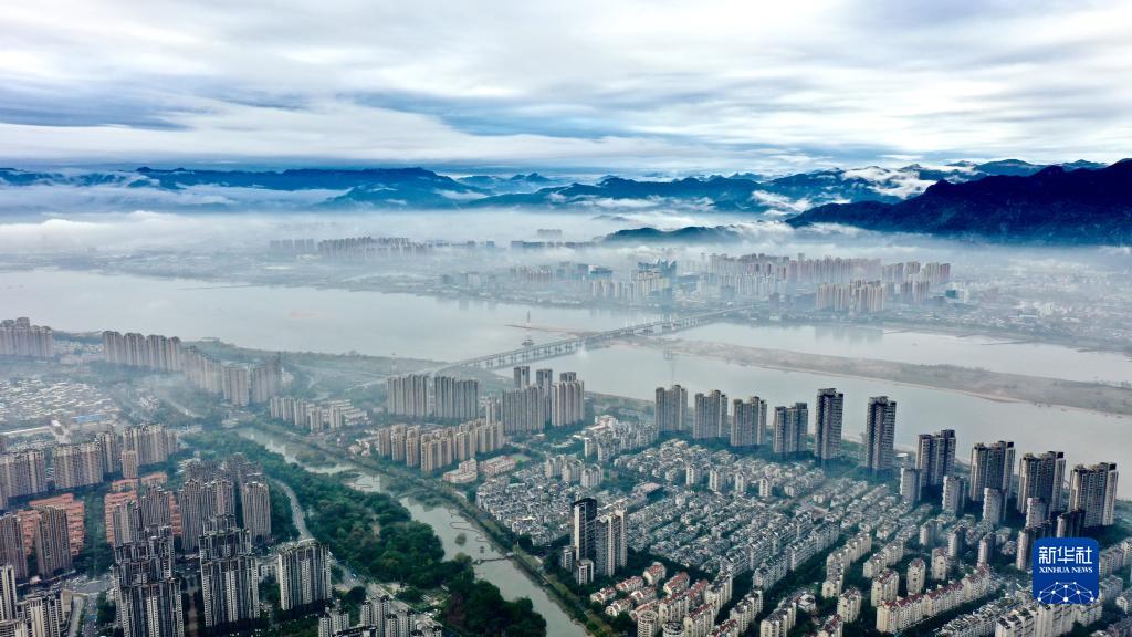 這是平流霧中的福州城市建筑群(2月6日攝,無人機照片)。