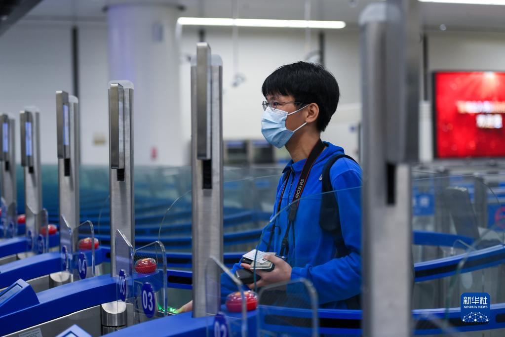 2月6日,在深圳蓮塘口岸,蓮塘/香園圍旅檢口岸首次啟用后的第一位旅客蔡佳洋通過閘機。