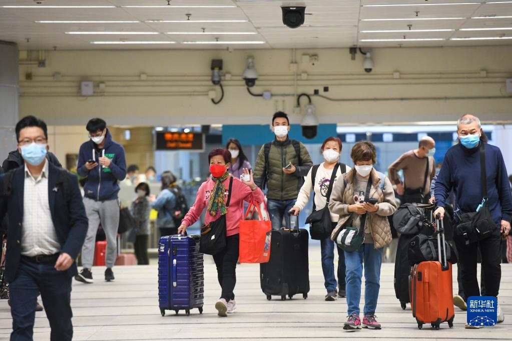2月6日,在羅湖口岸,從香港到深圳的首批旅客跨越連接深港兩地的大橋。
