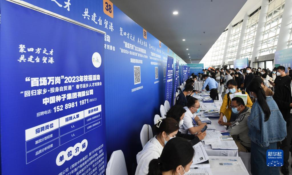 2月6日,求職者在用人單位招聘展臺前咨詢。