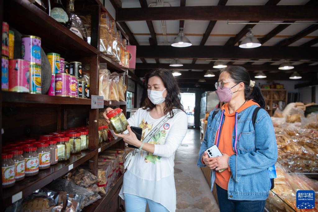 2月6日,廣東省赴澳門首發團成員在路環選購澳門特色蝦醬。