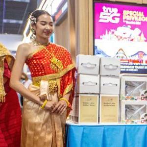 2月6日,在泰國曼谷廊曼國際機場,一名中國游客與工作人員自拍。