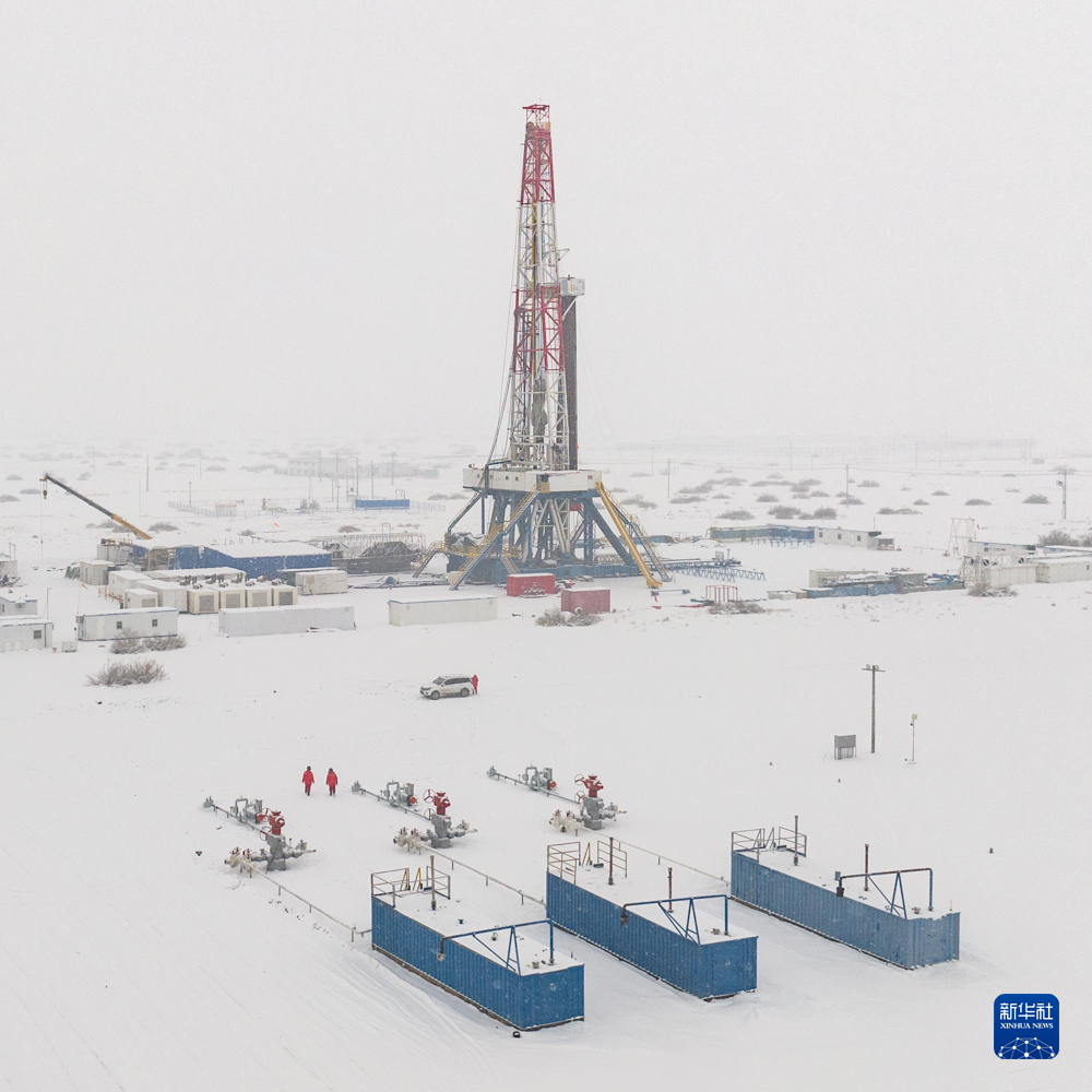 這是1月20日拍攝的吉慶油田一處鉆井現場(無人機照片)。