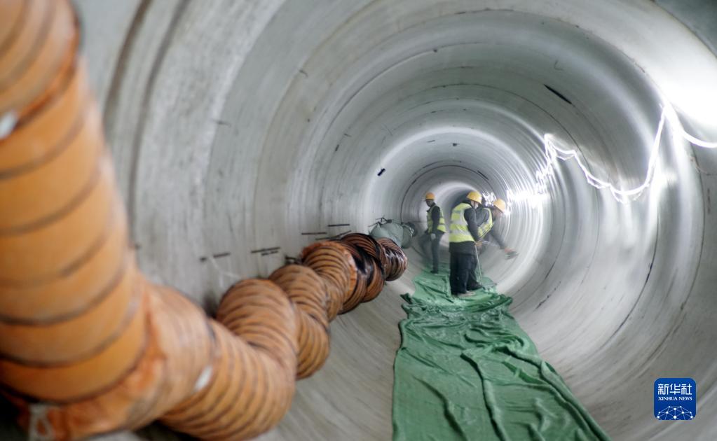 2月6日,工人在南水北調配套工程北京大興支線機場連接線的地下管線中施工。