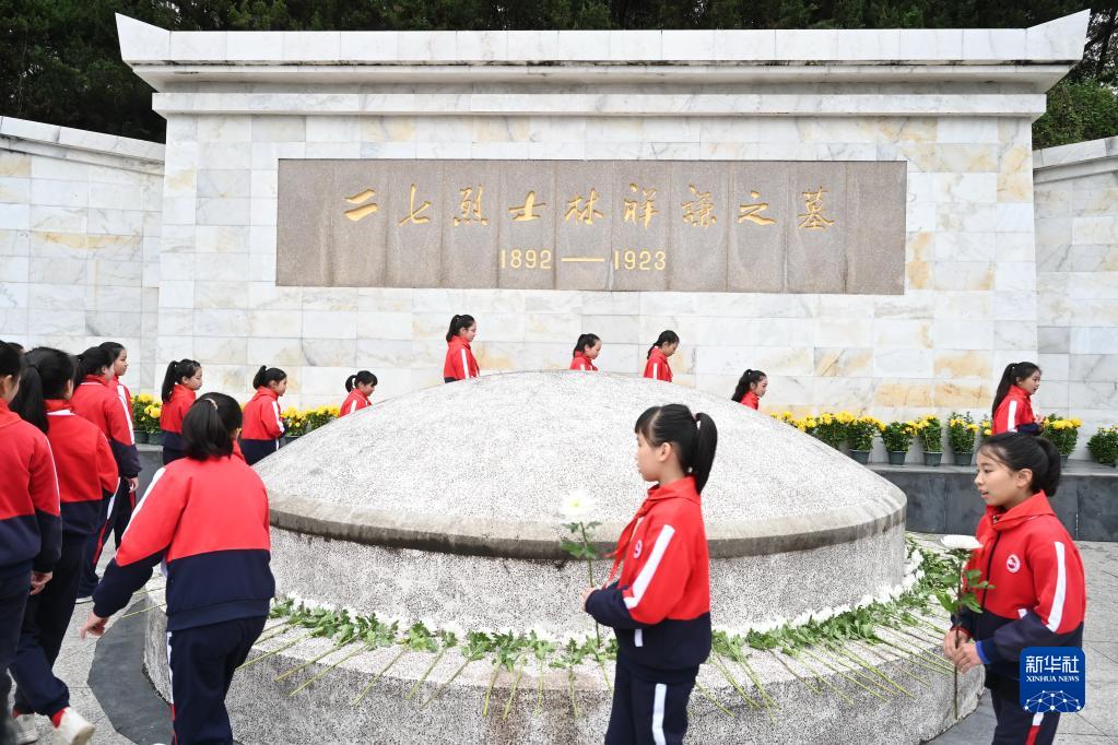 2月7日,參加“開學第一課——致敬林祥謙”暨紀念林祥謙烈士犧牲100周年活動的少先隊員向林祥謙烈士獻花。當日是林祥謙烈士犧牲100周年,紀念活動在福建省福州市閩侯縣祥謙鎮的“祥謙陵園”舉行。