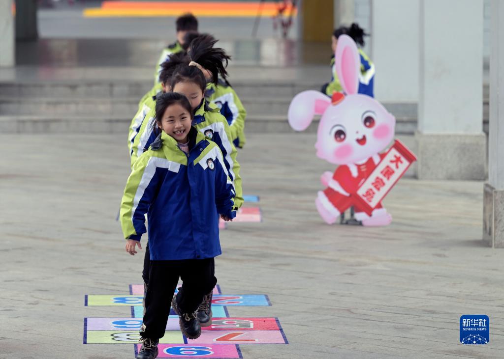 2月6日,合肥市方橋小學學生參加開學趣味闖關游戲。